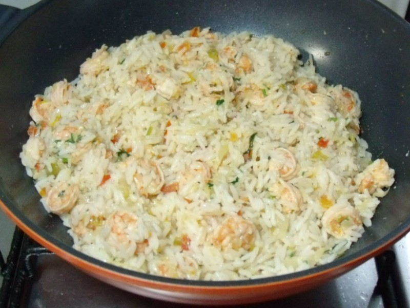 Esse arroz é simples e fácil de fazer. Nessa receita você pode distinguir o sabor dos ingredientes, pois foi preparada com um tempero suave, sem empregar creme de leite e leite de coco. O vinho branco além de aromatizar o prato, deixa um gostinho delicioso!