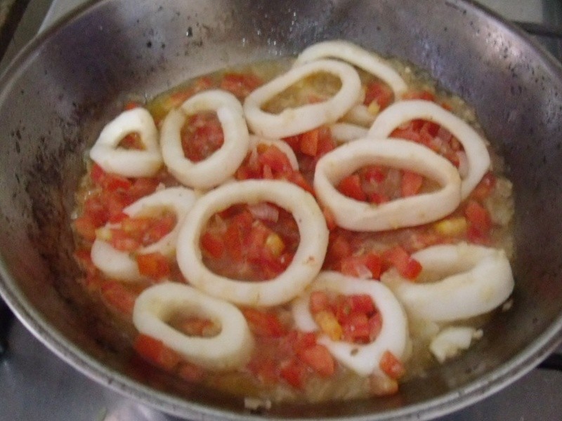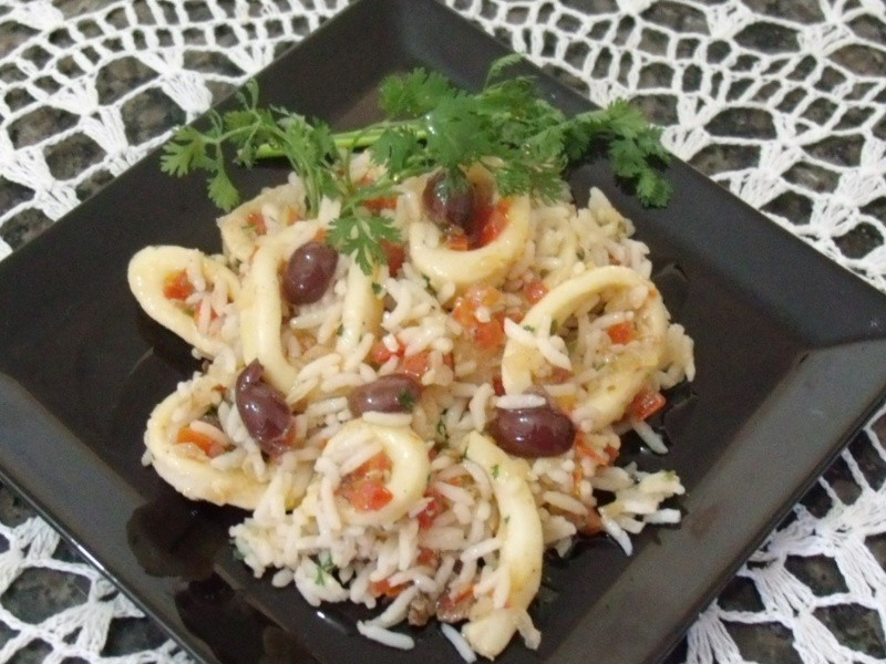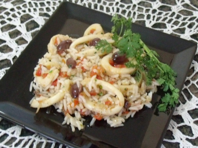 Hoje resolvi fazer um arroz de lulas para o meu almoço! Fiz um arroz refogado no alho, bem soltinho e montei essa receita que ficou uma delícia!