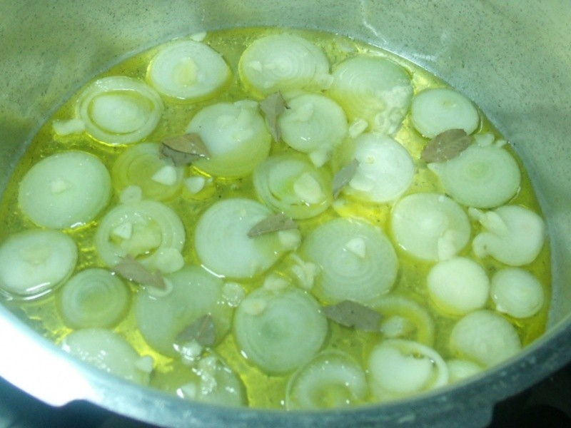 Em uma panela de pressão, colocar a metade do azeite, do óleo e do vinagre. Arrumar as rodelas de cebola no fundo, acrescentar o alho fatiado, as folhas de louro e os pedaços de atum. Regar com o restante do azeite, óleo e vinagre, colocar o restante das folhas de louro e temperar com sal e pimenta-do-reino a gosto. Deixar marinando por 10 minutos. Levar ao fogo e permanecer na pressão por 30 minutos. Deixar esfriar e colocar o atum com as cebolas, as folhas de louro e o alho em vidros esterelizados (ou pirex com tampa) e cobrir com o líquido em que foi cozinhado. Se não for suficiente, completar com azeite. Conservar na geladeira por alguns dias ou no freezer por 3 meses. Essa conserva ficou ma-ra-vi-lho-sa!