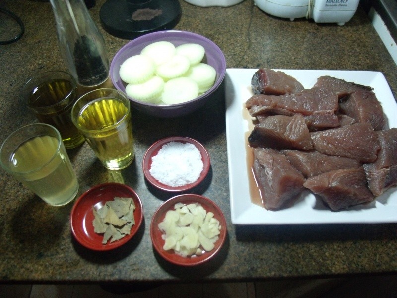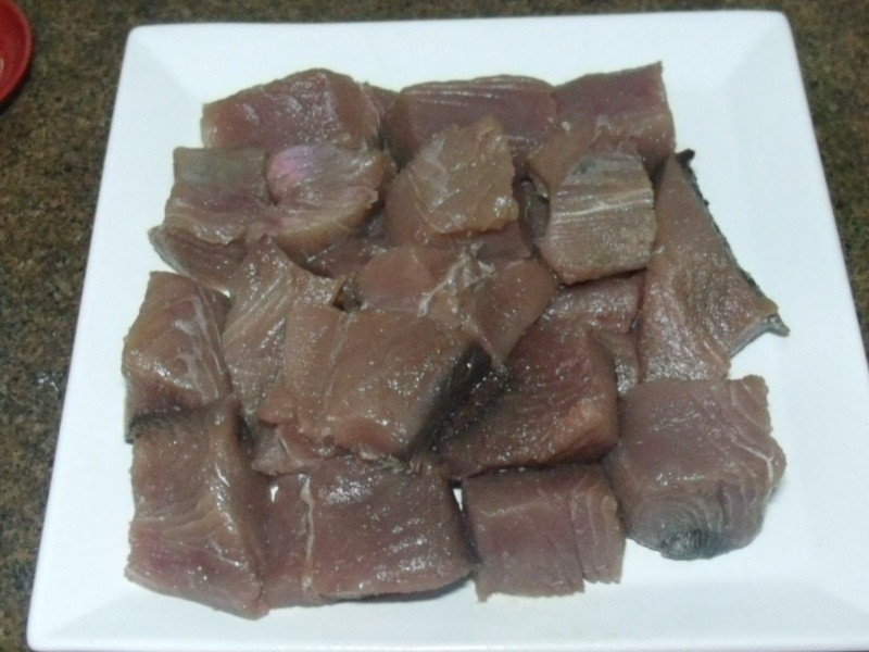 1 k e 200 g de filé de atum em pedaços com 3 a 4 cm de altura