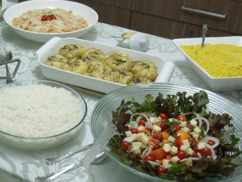 Nota: Esse prato pode ser preparado com alguma antecedência, devendo ser levado ao forno 20 minutos antes da hora de ser servido. Essa quantidade é para um número grande de pessoas, você pode fazer apenas a metade da receita.