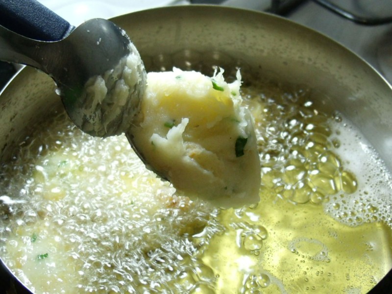 Óleo suficiente para fritar os bolinhos