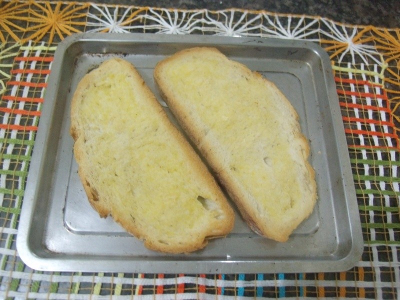 Nota: Sempre que compro o pão italiano, peço para que ele seja cortado em diagonal, próprio para bruschetta! Às vezes só encontramos já cortado de outra maneira, mas não tem problema, o resultado é o mesmo.