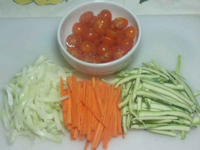 1 xícara (chá) de abobrinha em tiras finas (só a parte verde)
