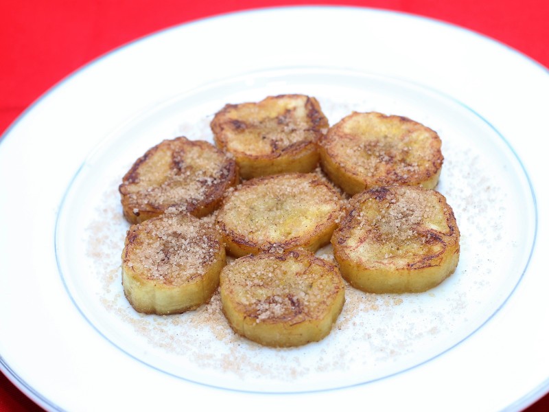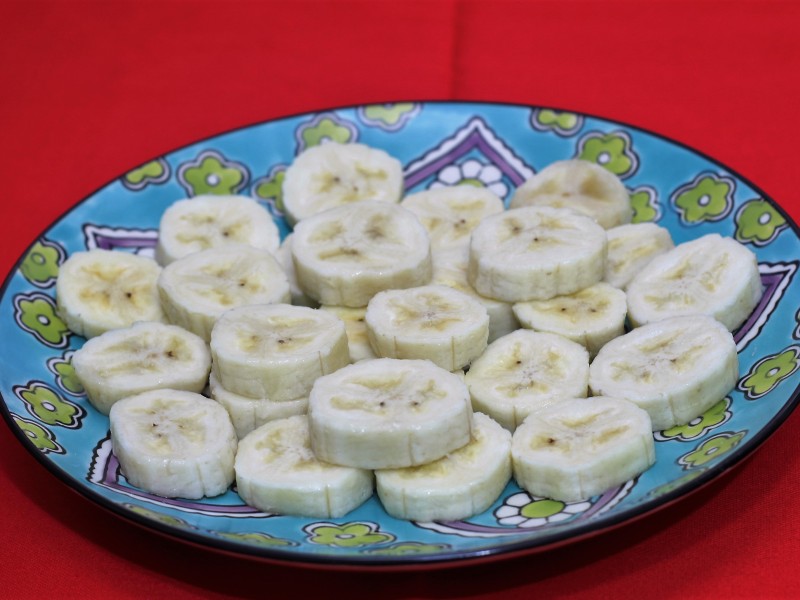 2 bananas Prata (ou Pacovan) cortadas em rodelas de 1/2 cm de espessura