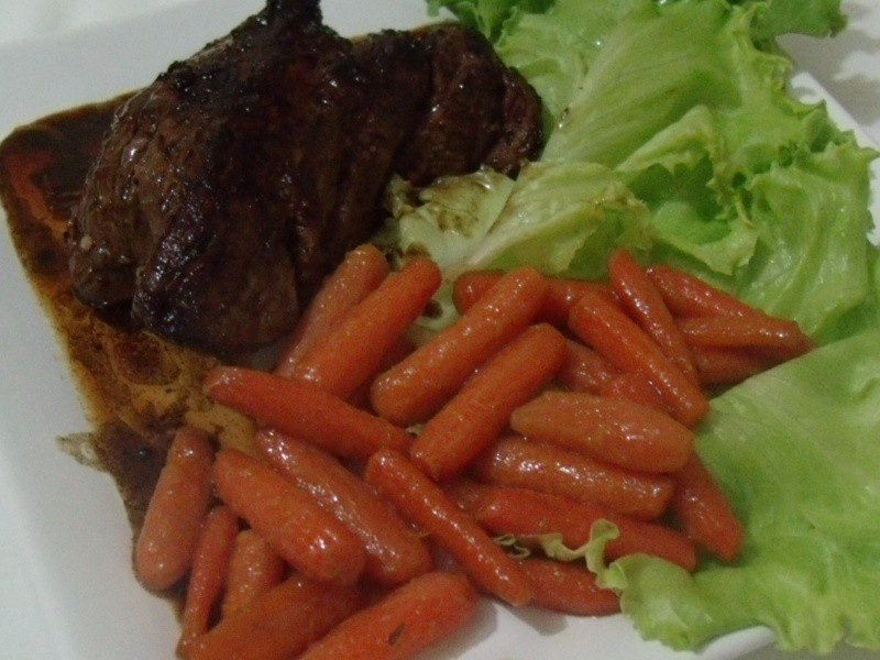 Nota: hoje fiz um filé grelhado e acompanhei com essa deliciosa cenourinha baby caramelizada, salada de alface roxo e queijo grego. A receita da salada vem depois. A cenoura baby por ser cara e não estar em qualquer supermercado, pode ser substituída por cenoura cortada em “palito” ou em rodelas.