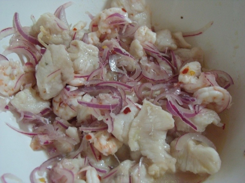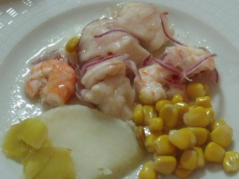 O Ceviche é um prato muito popular no Peru. Lá, eles marcam encontro com os amigos para degustá-lo, como nós marcamos um chop ou um caf’é aqui no Brasil. O peixe utilizado deve ser fresco, branco e de preferência o linguado, pescada branca, robalo ou tilápia. O camarão, costumo usar o barba roxa ou o rosinha. Em alguns lugares do Peru e Chile, eles acompanham com choclo (milho peruano maior que o brasileiro) e uma espécie de batata escura (nós a substituimos por batata doce). Este aqui foi preparado para nós pelo meu sobrinho Arthur Góes. Ficou uma delícia! Aprovadíssimo!