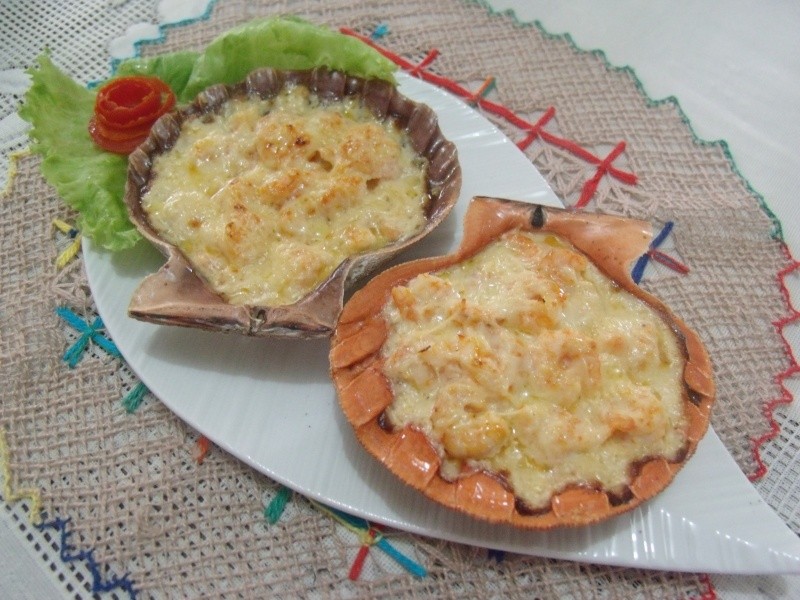 Nota: O creme de leite fresco pode ser substituído pelo de lata, assim como o queijo ralado, que você pode usar o de pacotinho. Aqui utilizei as conchas naturais de vieiras, mas podemos usar as de louça ou cascas de ostras grandes.