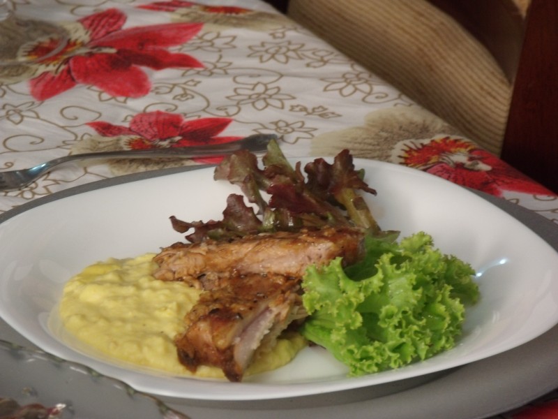 Esse prato foi criado para acompanhar o purê de Banana da Terra. Uma receita deliciosa, proviniente da "roça" mineira, gentilmente cedida pela minha amiga Isabel Montandon (Bel). Podemos utilizar uma costelinha de porco já temperada e acrescentar apenas o vinho branco, o mel e a mostarda ou temperar uma costela fresca como fiz aqui! É fácil de preparar e fica com um belo visual, além de muito saborosa! O purê é um escandalo de bom!