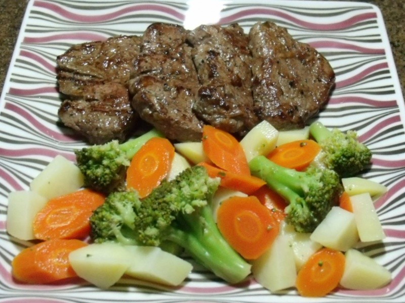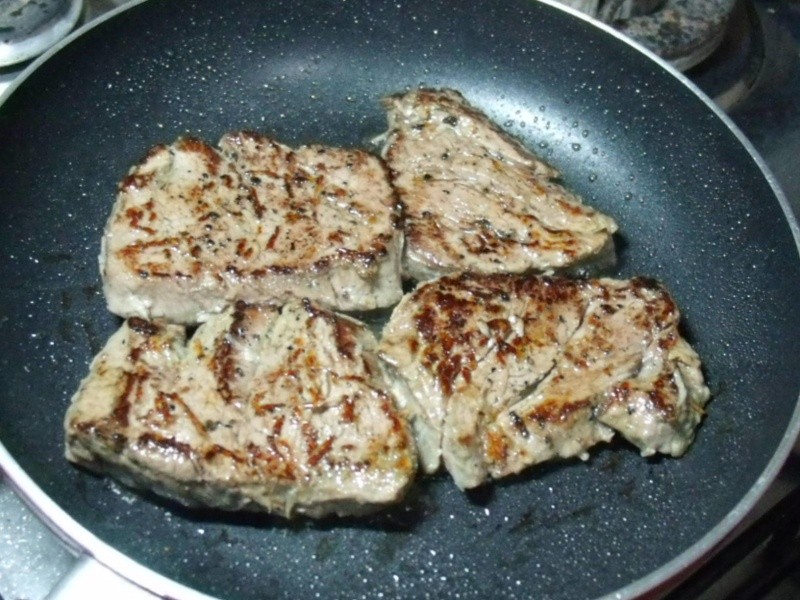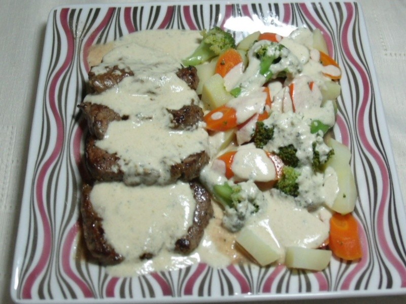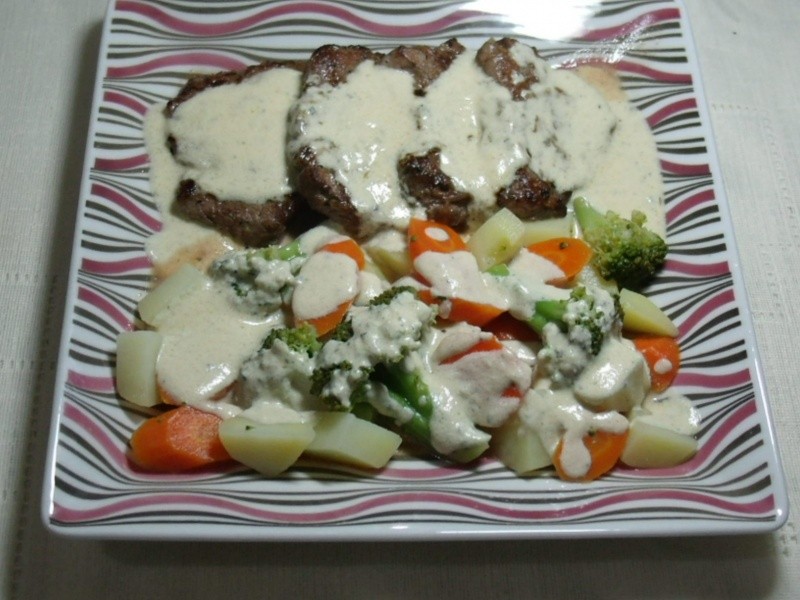 Levar uma frigideira grossa ao fogo, deixar esquentar e acrescentar o azeite. Selar os escalopes de um lado até dourar e só então virar o outro lado sempre com uma pinça para não perfurar a carne e perder o sumo. Dessa maneira o filé fica mais suculento. Reservar. Na mesma frigideira, colocar o vinho e soltar os resíduos da carne. Acrescentar o creme de leite e o gorgonzola esmigalhado. Mexer até desmanchar o queijo e despejar sobre os escalopes de filé e legumes ao vapor (branqueados) de sua preferência.