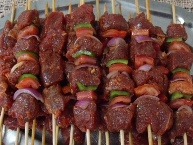 Nota: 1 k de carne rende aproximadamente 20 unidades. Podemos fazê-los também de frango, coração, porco ou carneiro. Nessa última opção, utilizo alecrim, hortelã e manjericão. Os espetinhos fizeram o maior sucesso nas festas juninas da minha rua!