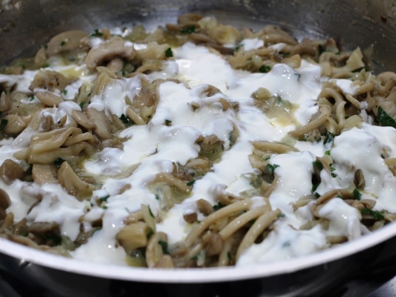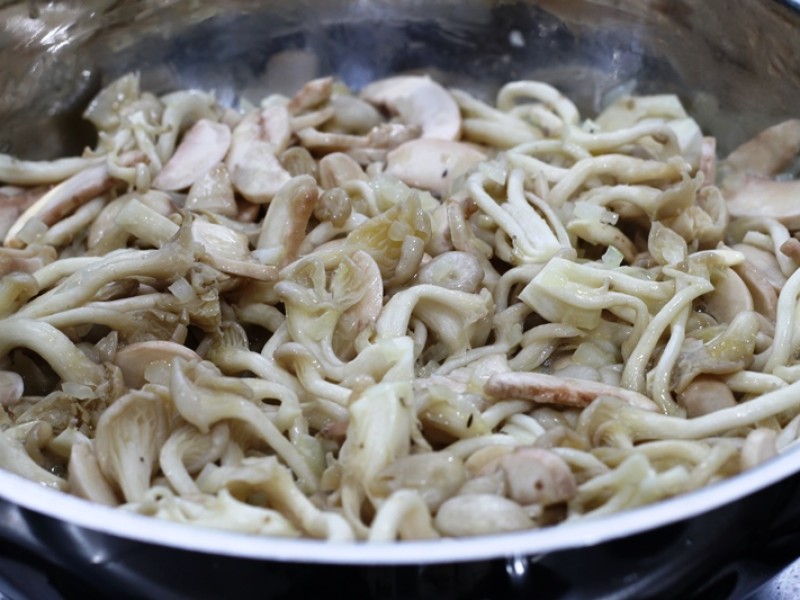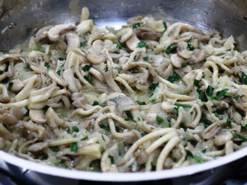Massa Italiana com Tinta de Lula do Mercadão e Cogumelo Paris e Shimeji da Liberdade. Esse tur gastronôminco que fiz, merecia uma receita que nos surpreendesse na primeira garfada! Ficou delicioso, principalmente acompanhado de um bom vinho tinto. Temos que ter cuidado na limpeza dos cogumelos, que são como esponjas e absorvem água com facilidade. Se estiverem limpos, é necessário apenas passar um pano úmido ou papel toalha para retirar as impurezas. Se estiverem sujos de areia, passar rapidamente em água corrente e secar em papel toalha ou num pano limpo. O Paris pode ser utilizado cortado em 4 partes, picado ou em fatias como fizemos aqui. O Shimeji, basta cortar a base e soltar os cachinhos.