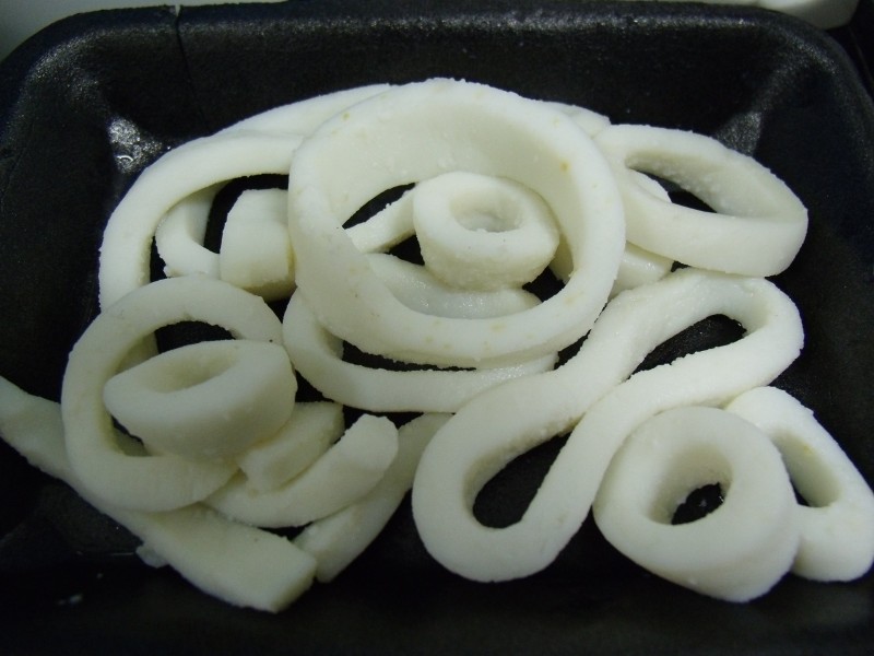 Nota: * Branquear, é a técnica de colocar o alimento em água fervendo e em seguida na água gelada com bastante gelo para interromper seu cozimento. As anéis de Lula não podem ficar no fogo por mais de 5 minutos ou ficarão borrachudos. Se isso acontecer, levar ao fogo com água e cozinhar por mais 40 minutos. Fique de olho! O caldo de camarão pode ser em tablete que é mais fácil de ser encontrado.