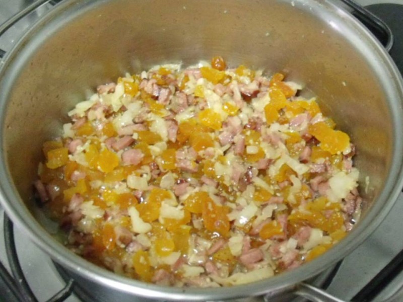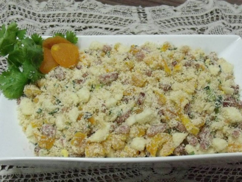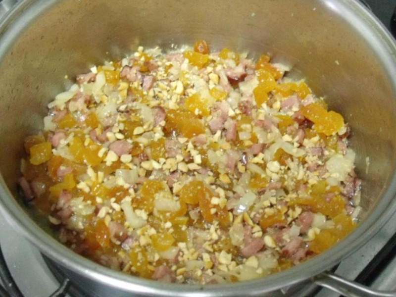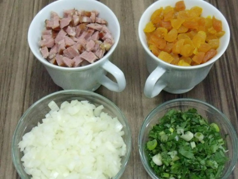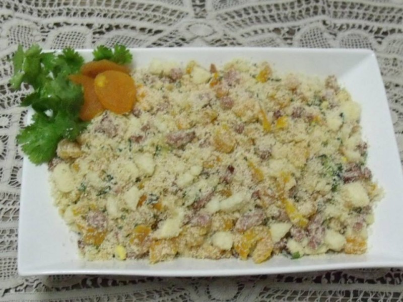 A farofa de damasco é fácil e rápido de preparar. Aqui eu a utilizei para rechear um frango desossado, mas fica maravilhosa acompanhando um assado ou grelhado. Podemos também acrescentar uvas passas ou outro ingrediente de sua preferência. Uma farofa gostosa é sempre bem-vinda em qualquer ocasião.