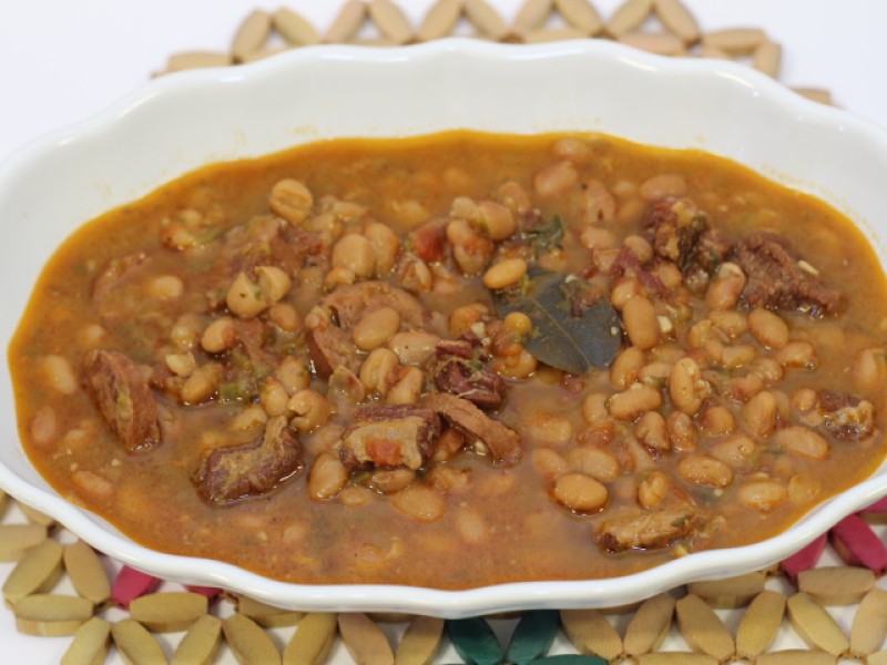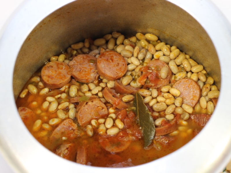 Costump preparar esse feijão caseiro de uma maneira prática e fácil. O primeiro passo é colocar o feijão em uma superfície lisa e descartar os grãos feios e outras impurezas que por acaso existam. Lavar bem, colocar em um recipiente e deixar de molho de um dia para o outro (no mínimo 12 horas), para que ele fique hidratado e macio. O Charque é lavado, cortado em cubos e também fica de molho de um dia para o outro trocando a água umas 3 vezes. A Linguiça Calabresa é escaldada para retirar um pouco a gordura e cortada em rodelas. Agora é ladeira abaixo!