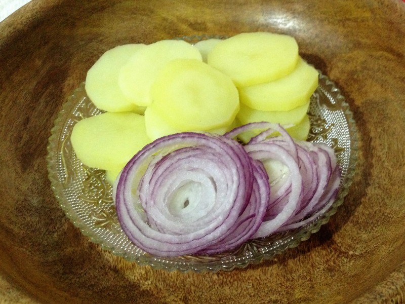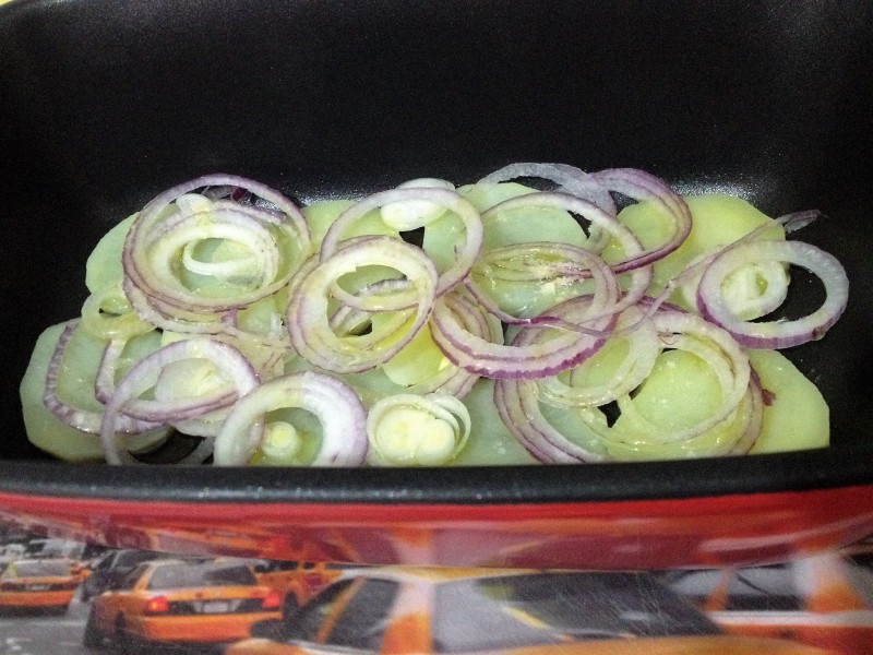 2 batatas pequenas cortadas em rodelas finas