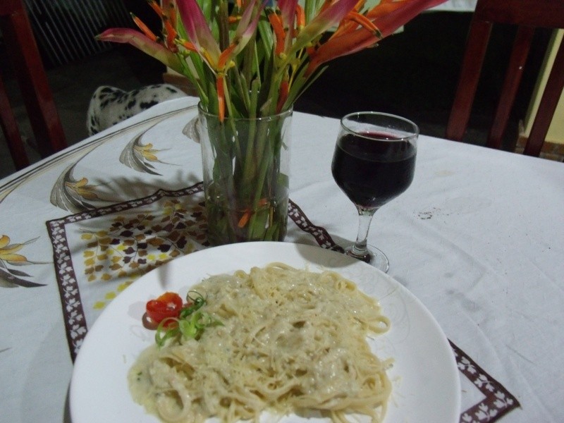 Ofereci um jantar a um amigo do meu sobrinho Felipe, o alemão Sven Gauder. O problema é que ele é vegetariano e tive que fazer um cardápio diferente, com entradas e prato principal sem nenhum tipo de carne, peixe, etc. Fiquei sabendo que ele adorava massa, então pesquisei inúmeras receitas de massa aos 4 queijos e montei a minha, que por sinal, ficou deliciosa! Fiz neste fim de semana, acompanhada de um bom vinho. Sucesso absoluto!