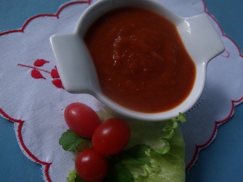 Levar ao fogo a água com os dentes de alho, os tomates, as cebolas e o pimentão cortados em cubos. Cozinhar até que esteja tudo bem macio. Bater no liquidificador com a água do cozimento (coloque pouca para não ficar um molho muito ralo) . Voltar ao fogo, acrescentar o açúcar e o sal a gosto. Deixar em fogo baixo até atingir a consistência desejada.