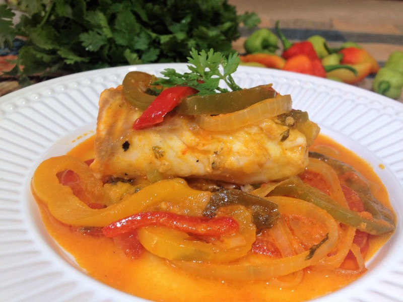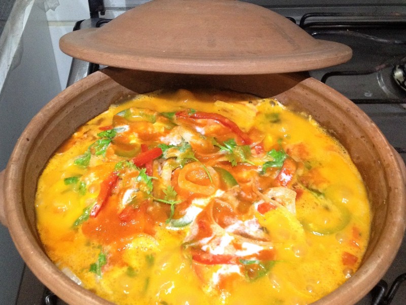 Moqueca suave, sem dendê, com leite de côco light e molho de tomate cadeiro. Ficou deliciosa e podemos saboreá-la sem culpa!