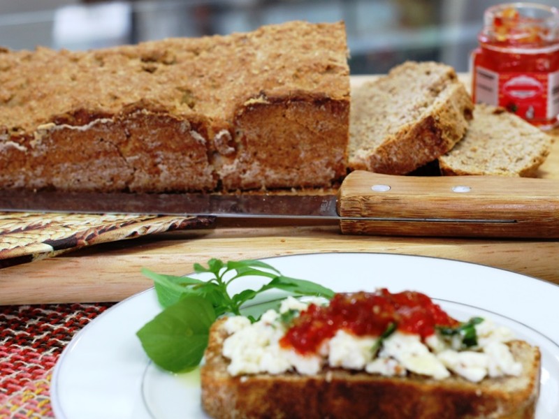 Esse pão é fácil de preparar e pode ser consumido de diversas maneiras, além de ser empregado como um dos ingredientes de outras receitas. Aqui ficou delicioso com ricota caseira e geleia de pimenta do Ciscando na Cozinha.