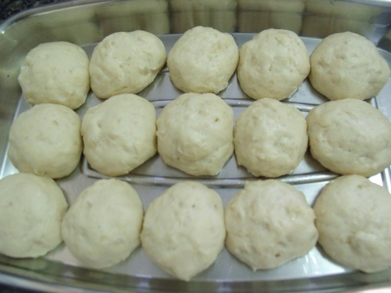 Obs: Da última vez em que fiz os pãezinhos, utilizei 2 colheres de sopa para colocá-los na assedeira, e o resultado foi maravilhoso! É mais fácil, rápido e não ficou feio. A receita rendeu 70 pãezinhos. Confiram a última foto da galeria: