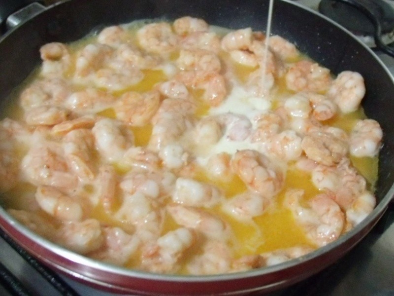 Nota: para obter 600 g de camarão é necessário comprar 1.200 k, pois após ser descascado, ele reduz-se à metade do peso. Outra dica é não colocar óleo na água, pois essa prática faz com que a massa fique escorregadia, impedindo o molho de fixar-se nela. Uma massa de boa qualidade, como essa usada aqui (italiana), não precisa de mais nada além de água e sal.