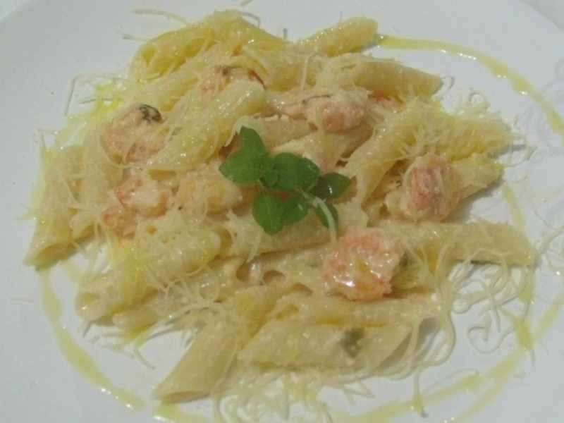 Levar uma panela ao fogo com 4 litros de água com sal e cozinhar a massa “al dente”. Cozinhar ligeiramente os camarões na manteiga, adicionar o creme de leite, a cebolinha, o suco e as raspas do limão siciliano. Misturar, polvilhar pimenta-do-reino e acertar o sal. Incorporar um pouco do queijo ralado para dar mais consistência ao creme. Nessa hora, a massa deve estar sendo escorrida para que receba o molho bem quente. Dispor em uma travessa ou diretamente em pratos individuais, regar com azeite extra virgem e polvilhar o restante do queijo ralado. Servir imediatamente, acompanhado de um bom vinho de sua preferência. Bom Apetite!