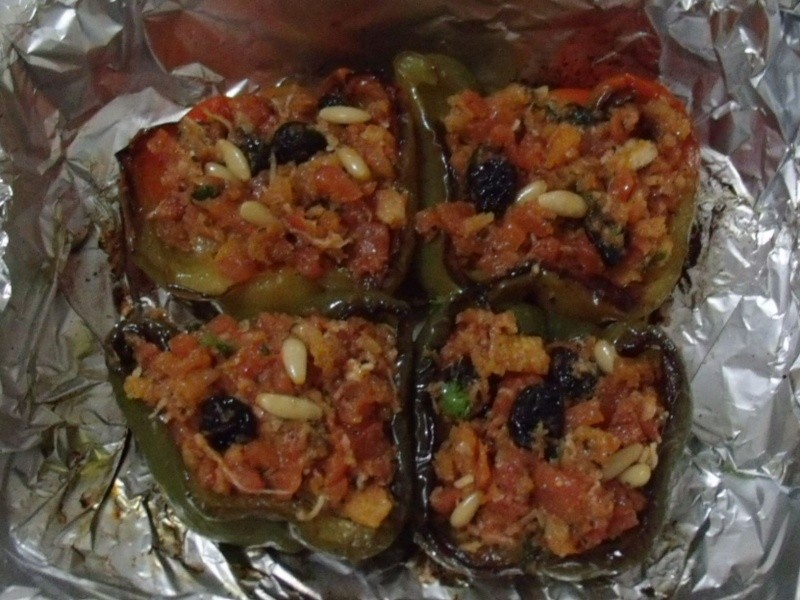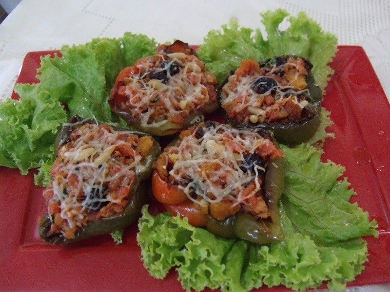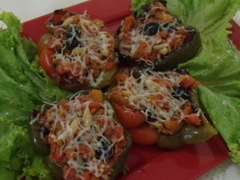 Conheci um autêntico Restaurante Italiano aqui em Maceió! Atende apenas por reserva de um associado, promove cursos, possui sala de cinema, enfim, diferente de todos! Uma das deliciosas entradas foi um pimentão recheado, que de acordo com a garçonete, chama-se “peperone pieno”! Adorei! Aqui tentei reproduzi-lo!