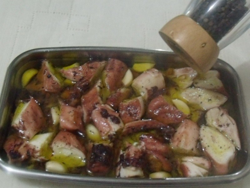 Prato típico português, que há muito tempo eu vinha pensando em fazer! Pesquisei várias receitas e optei pela simplicidade e originalidade dessa aqui. O polvo é cozido e depois grelhado ou assado no forno. A expressão lagareiro designa uma pessoa que trabalha num “lagar”, na produção do azeite. Dessa forma, o nome da receita é devido a utilização de azeite em abundância. Encontrei tentáculos de polvo enormes e arrisquei! Foi a primeira vez que fiz e não esperava um resultado desse! Maravilhoso!