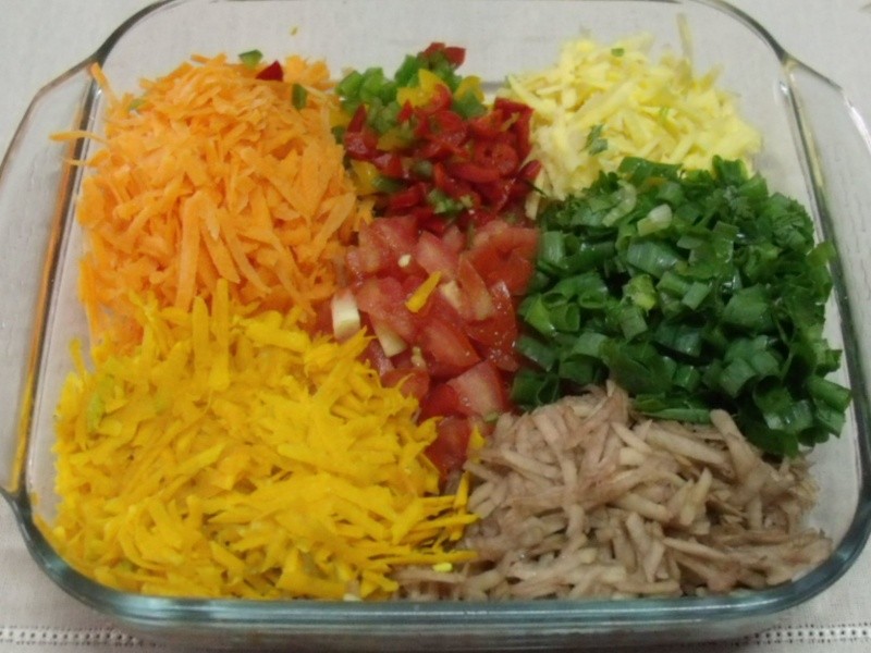 2 colheres (sopa) de pimentões picados (verdes, vermelhos e amarelos)