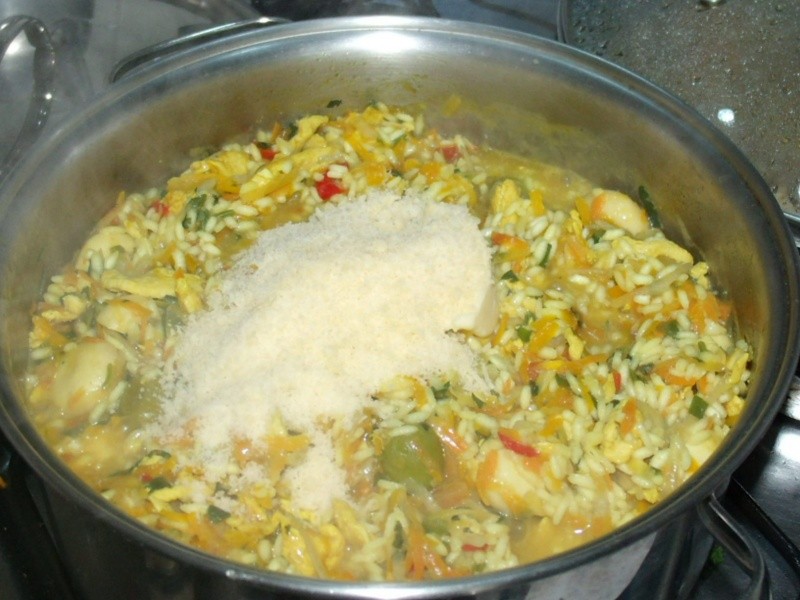 Jô é a secretária da minha filha e ela costuma fazer risotos deliciosos usando tudo o que tem na geladeira. Dessa vez, até mandioquinha entrou na panela. O resultado é um prato completo, colorido e bem nutritivo. Esse em especial ficou divino!