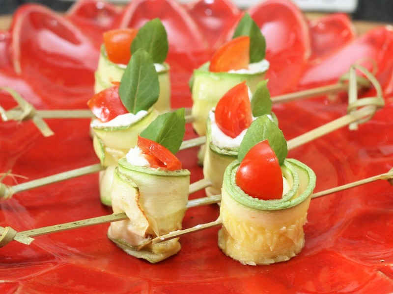 A Abobrinha é versátil, de baixa caloria e permite uma grande variação de preparo. Selada no azeite, recheada com Cream Cheese e decorada com tomate cereja e manjericão ficou divina!
