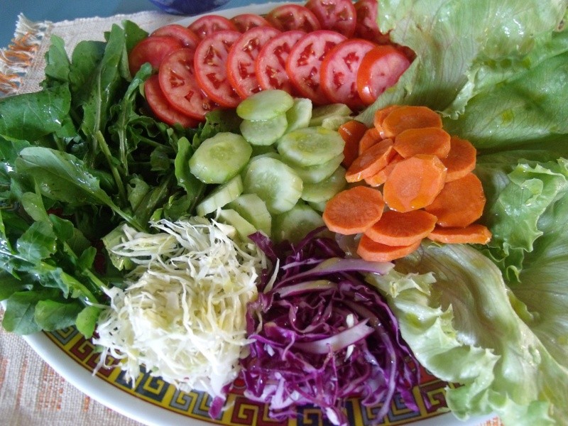 Arrumar cuidadosamente os ingredientes em uma travessa, e servir à parte, o molho francês para saladas (ver no site).