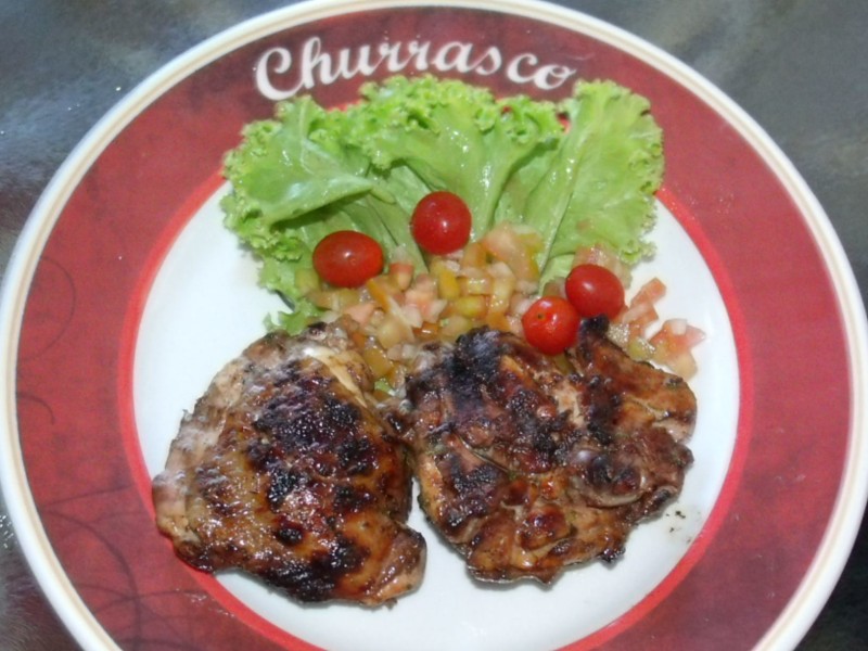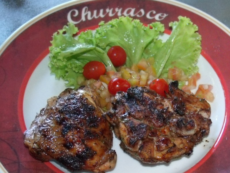 Retirar o excesso de gordura das sobrecoxas e deixá-las no limão por 30 minutos. Escorrer o limão, misturar os demais ingredientes e temperar as sobrecoxas. Com um garfo de dois dentes, fazer uns furos ao lado dos ossos para evitar que fiquem mal passadas. Levar à brasa deixando primeiro a parte da pele para cima. Após estarem bem grelhadas, colocar mais molho nas sobrecoxas (parte da pele), virá-las e observar sempre para não queimar, pois essa parte é mais sensível.