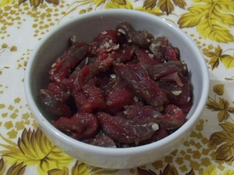 Nota: Aqui fiz 1/4 da receita, já que era apenas para mim e meu filho. Rendeu duas porções generosas com 250 g de filé.