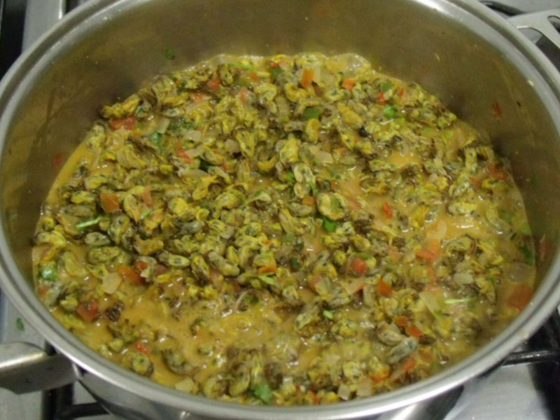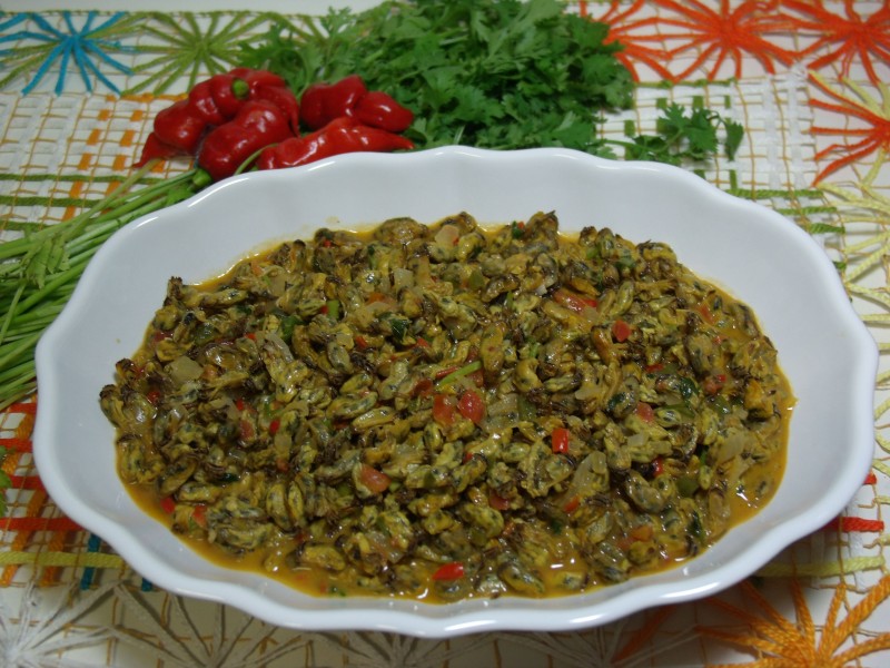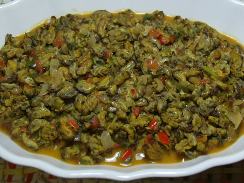 Limpar o sururu com atenção retirando as impurezas, lavar bem e reservar. Levar uma panela ao fogo com o azeite e refogar ligeiramente o alho, a cebola e a pimenta. Em seguida, acrescentar os tomates e o pimentão. Refogar e colocar o molho de tomate, o colorau, o leite de coco, o coentro, o sal e a pimenta-do-reino. Baixar o fogo e cozinhar lentamente esse molho por 10 minutos. Acrescentar o sururu e deixar por mais 10 minutos tomando gosto. Provar o sal. Servir em tacinhas individuais ou como prato principal com arroz refogado e farofa de manteiga.