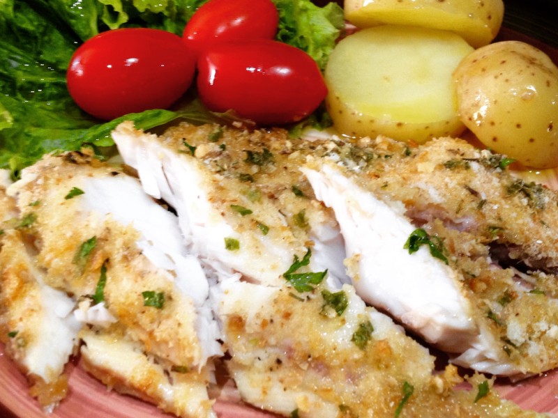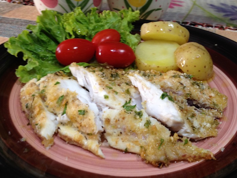 Esta é uma receita light e fácil de preparar ! A farinha de pão integral é feita em casa e a salsa e a cebolinha saíram direto da minha horta! O resultado é um prato saudável e muito saboroso.